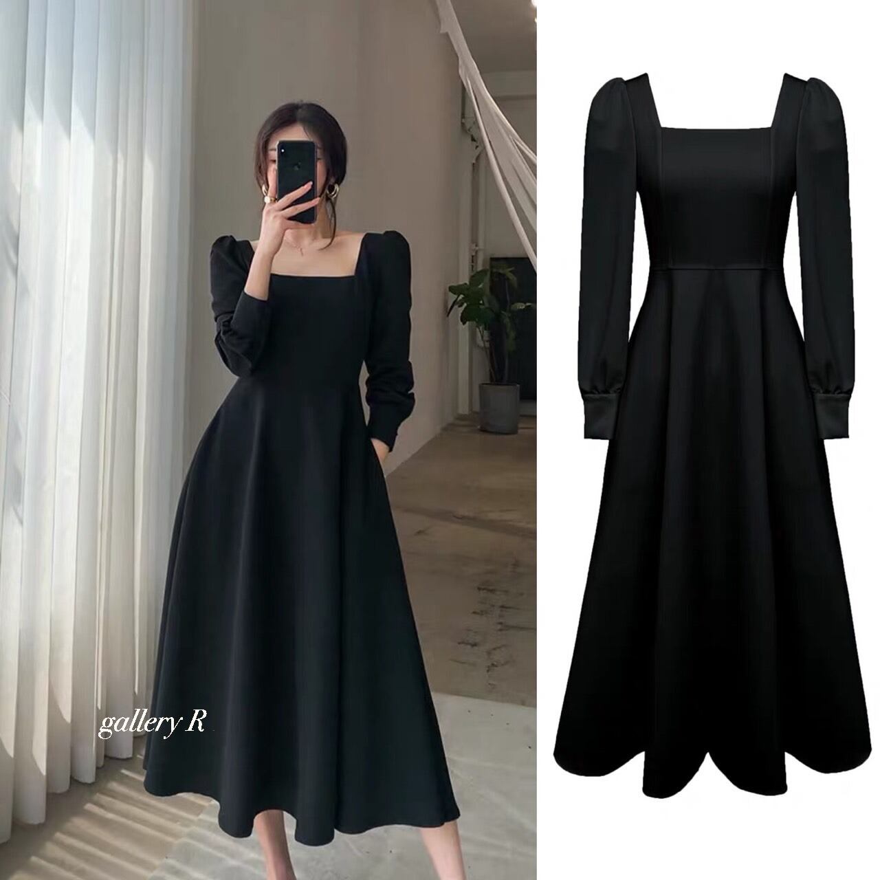 スッキリしたスクエアネックと控えめなお袖のパフスリーブ