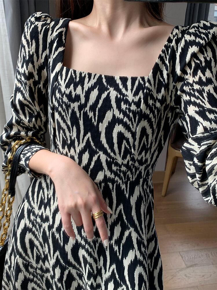 スッキリしたスクエアネックと控えめなお袖のパフスリーブ