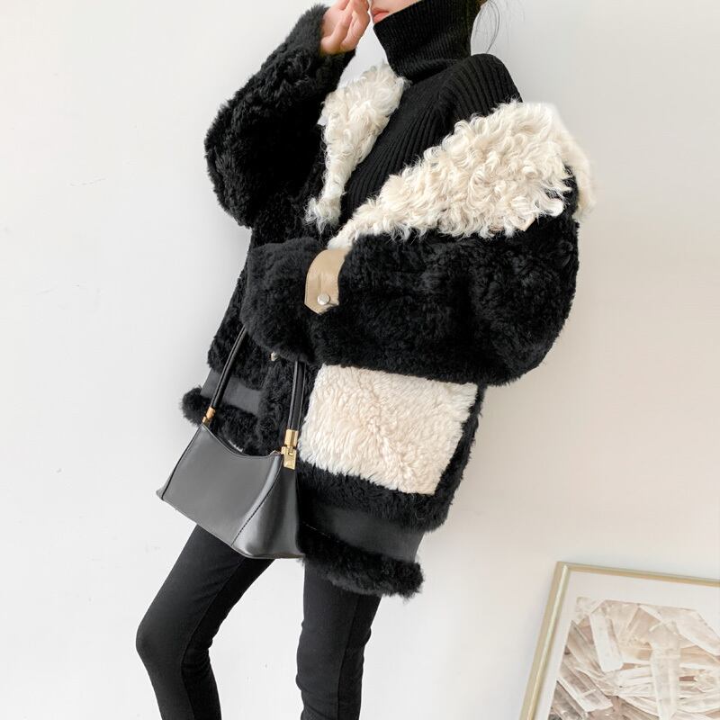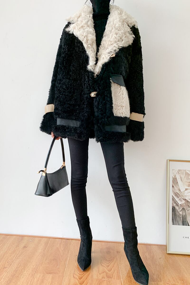 お襟元のラムの巻き毛が可愛い、バイカラーのコート ジャケット