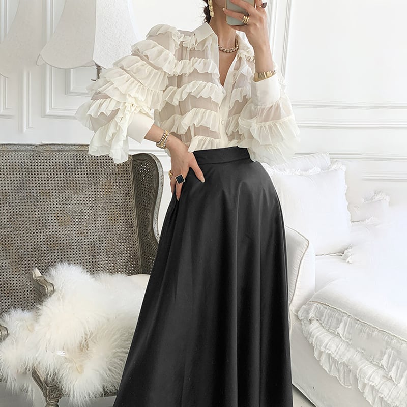 フリルがゴージャスでおしゃれな2020SSブラウスです。