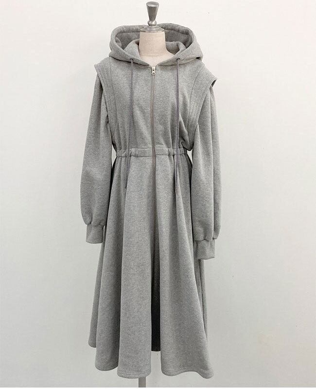 ジップアップやフードも効いて春まで着ていただけるスポーティなワンピースです。2021ss