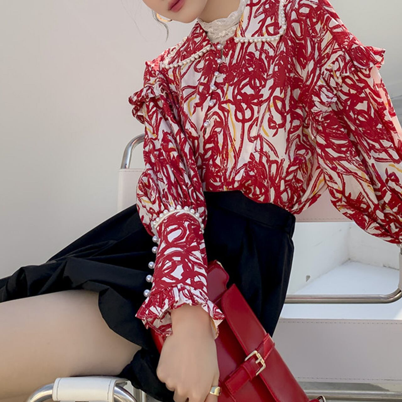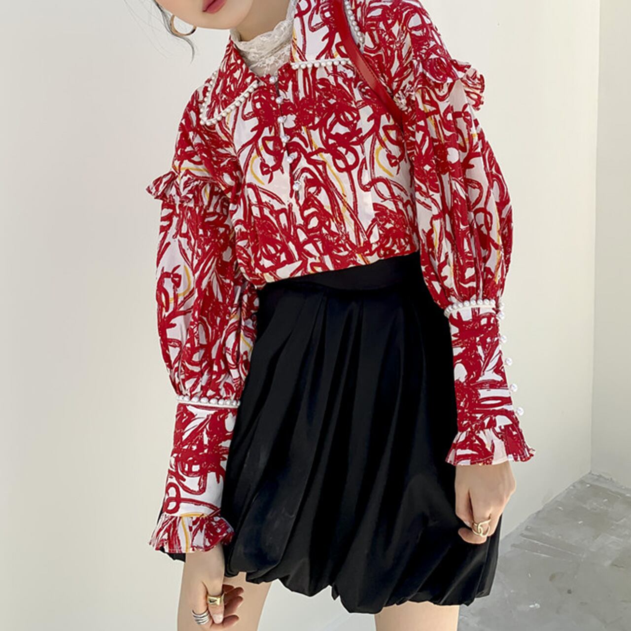 ★柄 ブラウス パール襟 ブラウス 春トップス★ おしゃれな柄のかわいいブラウスです。 【サイズ】 サイズ フリーサイズ 着丈60,肩幅56,バスト124,袖丈51 採寸方法によって多少の誤差が発生いたします。 ディスプレイによって発色が異なる場合がございます。
