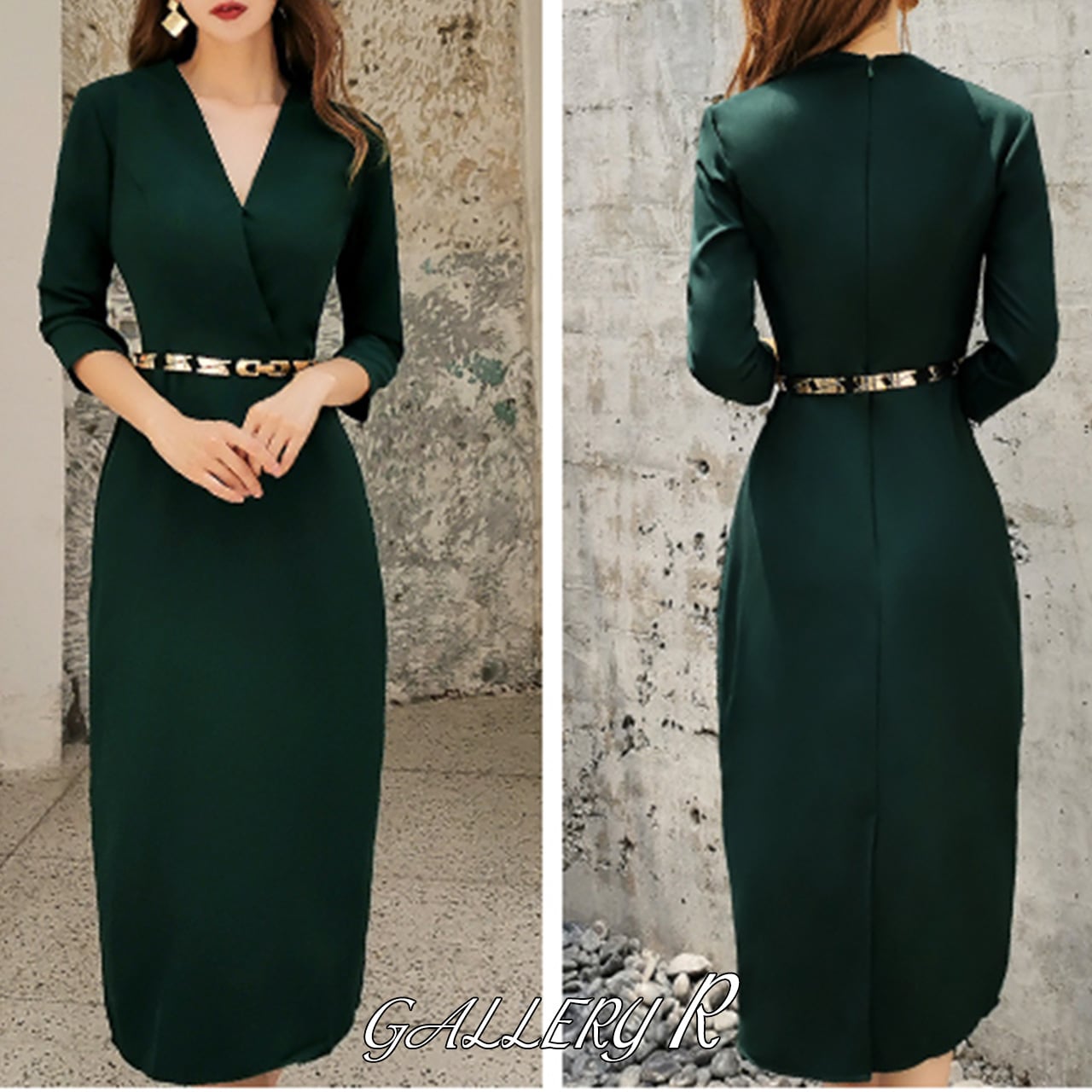 Vネックがスッキリ細見えのタイトめワンピース オーソドックスなデザインで飽きがきません。