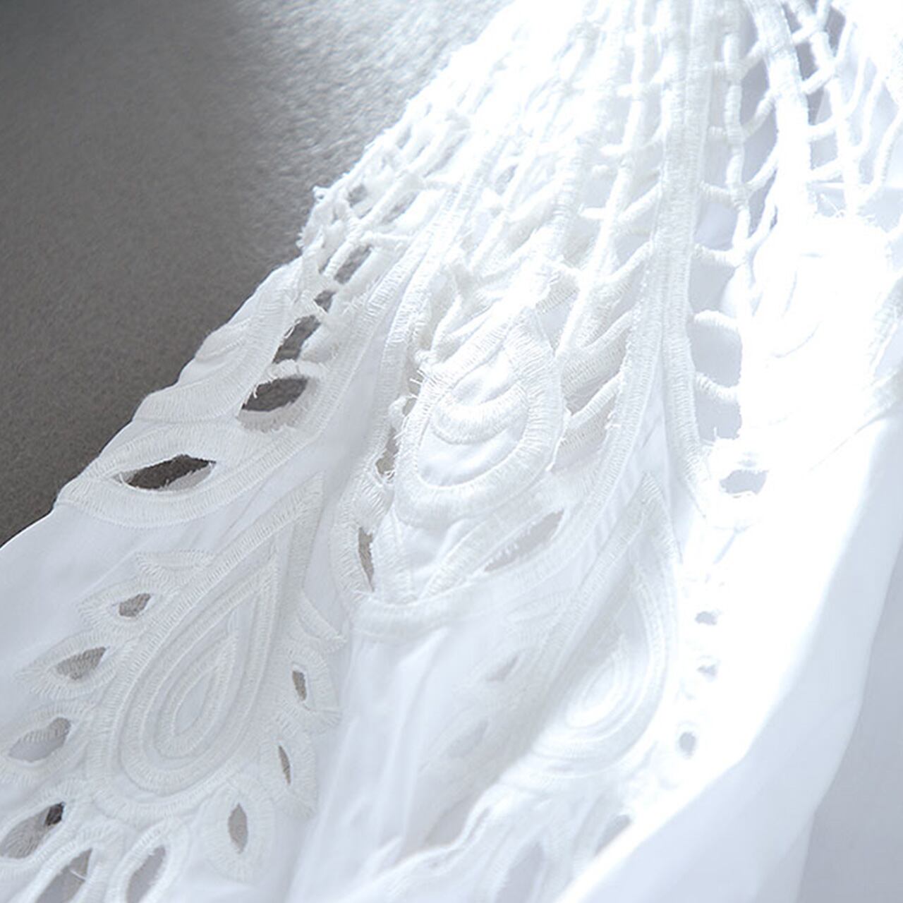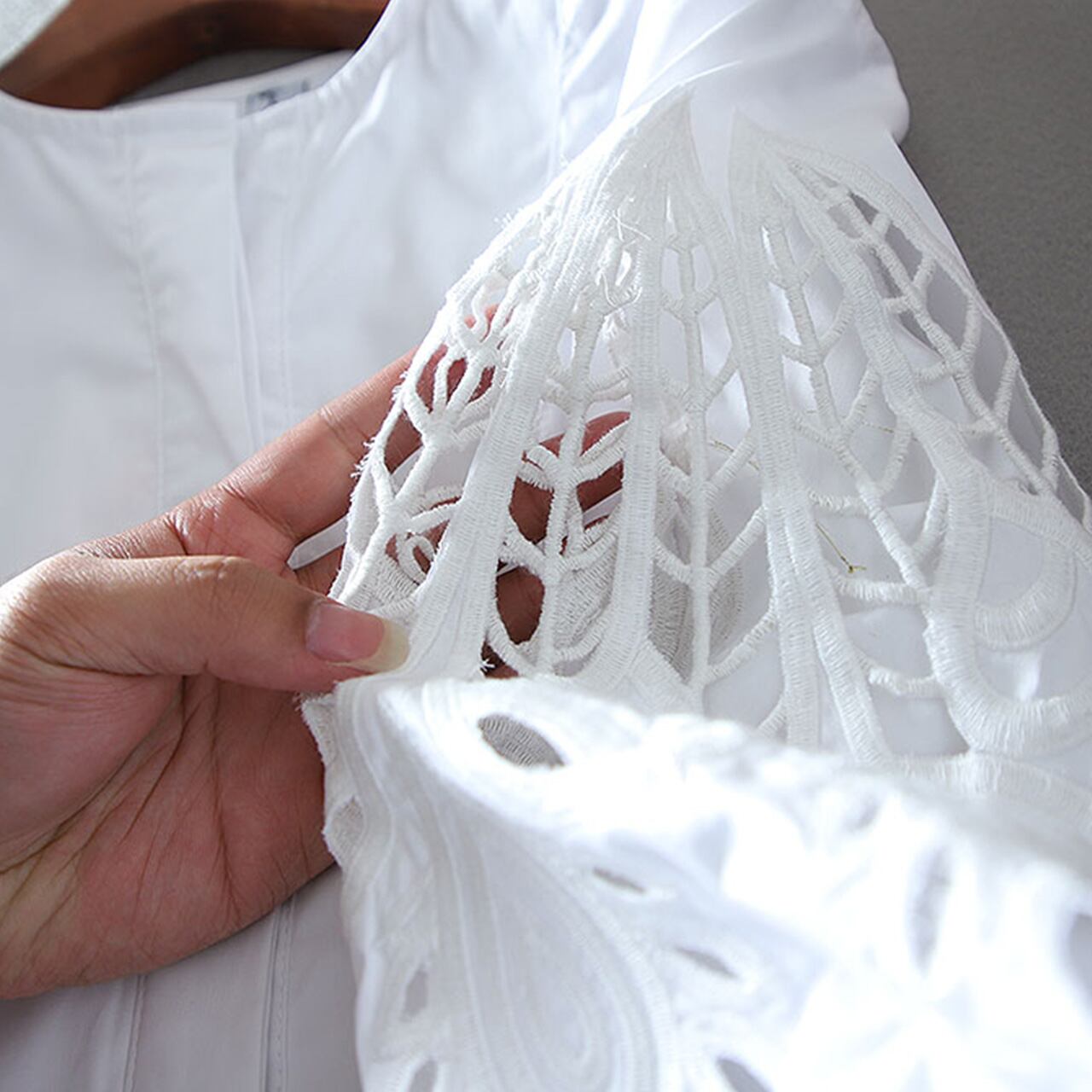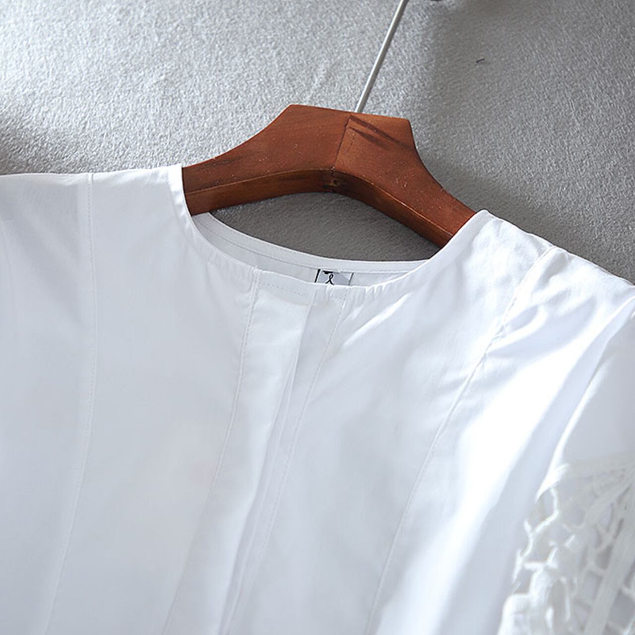 レース ブラウス Uネック 白シャツ お袖のレースが大人にも着やすいブラウスです。白シャツでさわやかにお使いいただえけるドレスです。 【カラー】 ホワイト、カーキ 【サイズ】 S:バスト100、着丈62、袖丈52 M:バスト103、着丈63、袖丈53 L:バスト106、着丈64、袖丈54 採寸方法によって多少の誤差が発生いたします。 ディスプレイによって発色が異なる場合がございます。