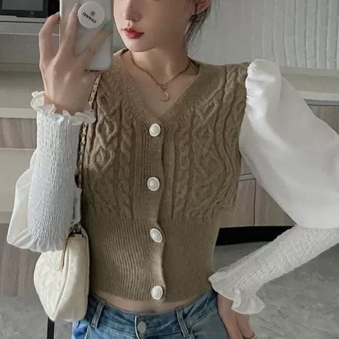 切り替え ニット トップス ブラウス ウエストシェイプ 3COLOR