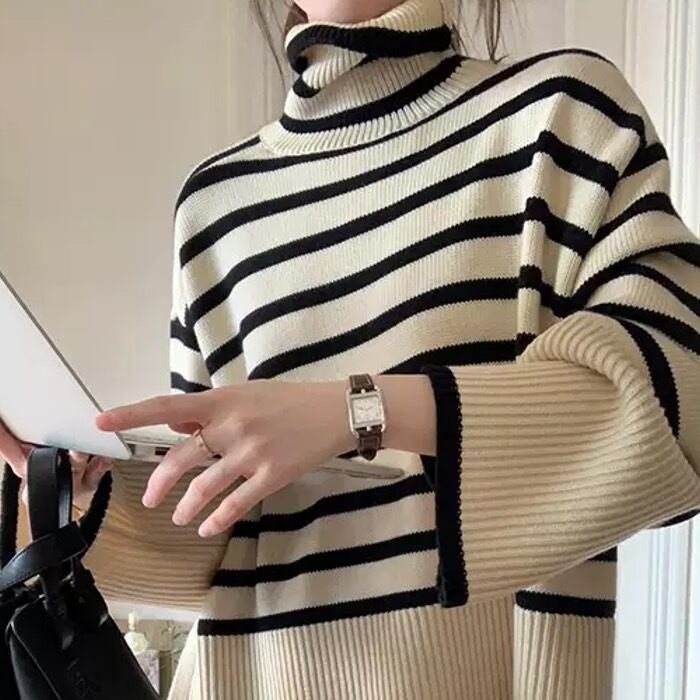 ニット セーター トップス ボーダー タートルネック プルオーバー