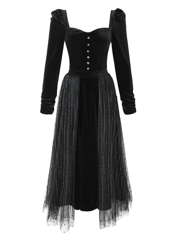 ドレス スクエアネック イブニングドレス 上質 レーシー S/XL