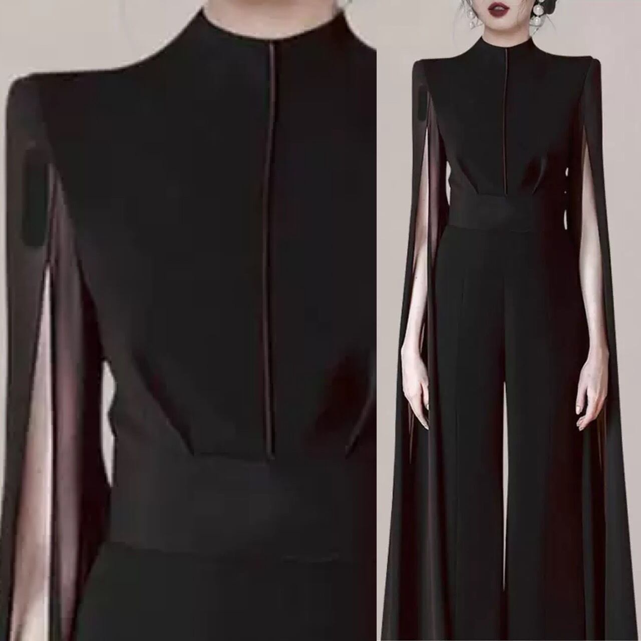 ドレス クルーネック パンツ ロングドレス シアー感スリーブ